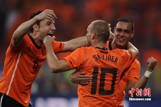當(dāng)兩隊(duì)再度上場(chǎng),在很多人的心里,眼前的比賽已經(jīng)幾乎沒(méi)有懸念,很少有人能逆轉(zhuǎn)占據(jù)領(lǐng)先的“五星巴西”。剛剛過(guò)去的45分鐘里,在巴西人圓熟又實(shí)用的打法面前,荷蘭人甚至難有威脅,尖刀式人物羅本已經(jīng)被牢牢盯死,“橙衣軍團(tuán)”還有誰(shuí)能改變局面——沒(méi)人會(huì)想到斯內(nèi)德。