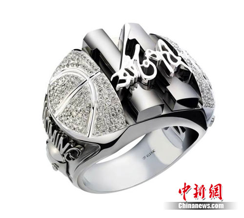這枚姚明版“至尊鉆戒”的表面是籃球紋樣點(diǎn)綴的晶瑩的鉆石,中部用黑金凸起的色塊寫就姚明在休斯頓火箭隊(duì)的隊(duì)服號(hào)碼,其上再鐫刻姚明名字的手寫體,筆力瀟灑遒勁,戒指?jìng)?cè)面還有姚明的頭像和英文的YaoMing字樣。整個(gè)戒指共鑲嵌鉆石248顆,通體莊嚴(yán)厚重,對(duì)比鮮明,展現(xiàn)出無(wú)比的王者之氣,象征著姚明在中國(guó)乃至國(guó)際籃球界的崇高威望和領(lǐng)袖氣質(zhì)。