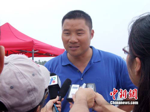 墨鏡、藍T、褐色短褲,還別了對講機,等他拿出對講機開始說話的時候,酷的就像007!斑@次我是以浙江省水上運動管理中心工作人員的身份率隊征戰(zhàn)水運會的!泵详P良笑著說。