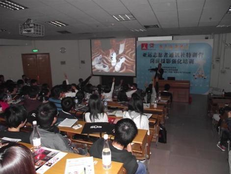 31日下午,所有學員返回廣州,在中山醫(yī)學院進行了攝影強化培訓。資深攝影記者為通訊社同學進行了攝影技巧培訓,現(xiàn)場氣氛十分熱烈。