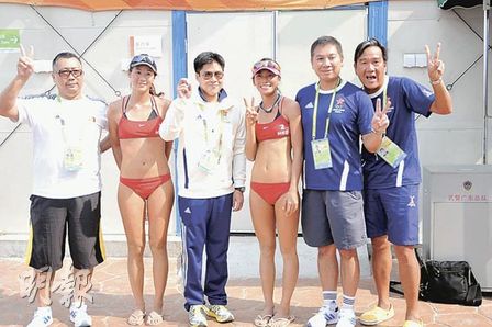 昨日在沙排場(chǎng)地首戰(zhàn)的香港組合謝穎紅及江卓?jī)x,兩人旗開(kāi)得戰(zhàn)勝韓國(guó)組合,到場(chǎng)觀看比賽的香港代表團(tuán)副團(tuán)長(zhǎng)霍啟剛表示已觀看武術(shù)、體操等賽事,提到港隊(duì)前2天獲2金,他開(kāi)心地說(shuō):“我較喜歡刺激的比賽,排球、羽毛球、乒乓球都不錯(cuò),不過(guò)有時(shí)比賽太刺激,中途要走到后臺(tái)不敢看下去呢!被魡倢⒘粼趶V州觀戰(zhàn)整個(gè)亞運(yùn),他又表示沙排氣氛熱烈,假如香港主辦亞運(yùn)必會(huì)盡力爭(zhēng)取舉辦這項(xiàng)“沙灘嘉年華”。