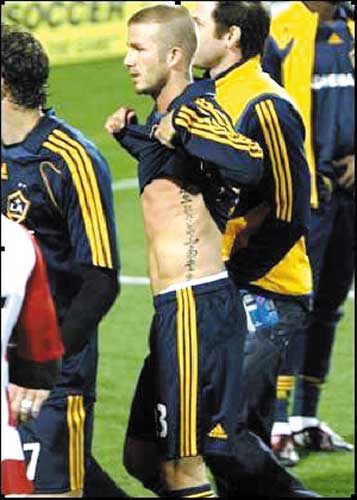 不過,無論如何,這個文身至少比Dave loves Vic 4eva(大衛(wèi)永遠愛維多利亞)更有意義。貝克漢姆正是在訪問中國時刺上這個文身的,而且還采取了最先進的文身技術(shù)。知情人士透露:“最新這個文身使用了完全不同的技術(shù),和其他的相比,這個文身在他的身體上就像拉過絨的紡織品。這是非常獨特的,只有香港才有!