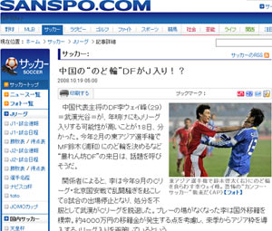 李瑋鋒即將加盟日本J聯(lián)賽的消息最早見諸于17日的日本雅虎體育。當(dāng)時(shí),雅虎體育就以“功夫足球?qū)⒌顷懭毡?”為題,曝出了中國(guó)國(guó)家隊(duì)主力李瑋鋒即有可能在明年初加盟J聯(lián)賽,并稱李瑋鋒“作為最強(qiáng)最兇悍的后衛(wèi),堪稱中國(guó)功夫足球的代名詞”。19日,日本產(chǎn)經(jīng)體育等多家媒體進(jìn)一步證實(shí)了這一消息,并稱“動(dòng)粗小子”李瑋鋒的到來不 啻為一場(chǎng)“恐怖襲擊”。