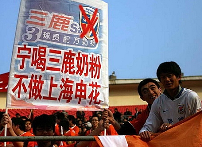 戰(zhàn)建業(yè),魯能球迷打出的標(biāo)語(yǔ)