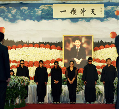 據(jù)臺(tái)灣媒體報(bào)道,錢一飛的靈堂由三百顆籃球布置而成,正中央懸掛國(guó)民黨參選人馬英九所題的“一飛沖天”挽聯(lián),充分顯示出錢一飛在戰(zhàn)場(chǎng)上拼戰(zhàn)不懈、戰(zhàn)績(jī)彪炳和一生精彩的籃球精神。
