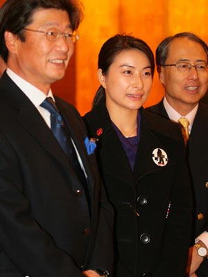 日本工作人員爭(zhēng)相與跳水皇后郭晶晶合影留念。