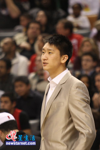身著西裝的孫悅更多的時(shí)間只是靜靜地坐在場(chǎng)邊觀戰(zhàn)。只是在比賽暫停期間,他才起身與隊(duì)員一起傾聽(tīng)主教練對(duì)比賽的部署。在中國(guó)孫悅是一個(gè)很有實(shí)力的球員,但在NBA卻不得不從板凳上站起。