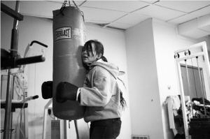 謝莉有個(gè)漂亮的鼻子,還有高高的顴骨。她的祖母不喜歡她打拳擊,就是怕賽后她這樣告訴別人“我打過拳擊了”。但是霍克要保護(hù)的不是謝莉的臉蛋,而是她繼續(xù)打拳的信心,他知道,拳擊對謝莉有多重要。