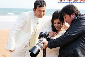 為了排遣等待天晴的無聊時間,張娟娟聽取了店里工作人員的建議,趁機挑選婚禮服。雖然口口聲聲地說被前一天的拍攝累壞了,但是一看到為自己準備好的極品婚紗,張娟娟又興奮地進入了試衣間,而她的老公薛海峰照舊老老實實坐在沙發(fā)上等待!疤膳铝!”趁著張娟娟去換另一套衣服,被老婆的N套華麗裙裝轟炸得暈頭轉(zhuǎn)向的薛海峰悄悄地對記者說:“我已經(jīng)審美疲勞了!