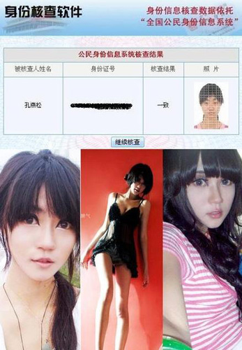 中新網(wǎng)4月21日電 近日網(wǎng)上又流傳出一組北體大學(xué)生、“超美腿女”孔燕松的身份證照片,引來(lái)網(wǎng)友一片驚呼。