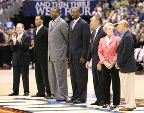 除以上三人外,擁有15年經(jīng)驗(yàn)的球星阿德里安·丹特利、活塞老板比爾·戴維森、資深分析家迪克·維塔利、伊馬庫(kù)拉塔大學(xué)女隊(duì)教練卡西·拉什也同時(shí)入選08籃球名人堂。