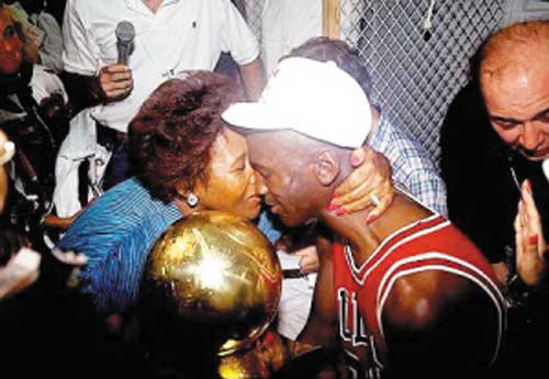 也正是由于喬丹媽媽迪洛瑞斯對(duì)北卡大學(xué)的偏愛(ài),在喬丹高中畢業(yè)時(shí),領(lǐng)著兒子先后參觀了十幾所大學(xué)后,迪洛瑞斯和老公最后還是把喬丹送到了北卡大學(xué)。這一步在幫主的籃球生涯中,有著舉足輕重的分量。