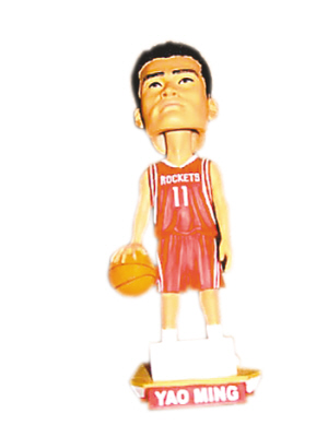 賽后,姚明得到一箱自己的搖頭娃娃。見(jiàn)蘭德里看得眼饞,姚明笑著吆喝:“100美元一個(gè)!