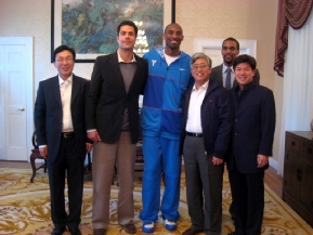 科比感謝張總領(lǐng)事邀請(qǐng)他來官邸作客,并愉快地憶及去年8月赴京參加北京奧運(yùn)會(huì)的情景?票缺硎,親身參加北京奧運(yùn)會(huì)是他巨大的榮耀。在華期間,他初步領(lǐng)略到了絢麗多彩的中國文化和快速發(fā)展的中國社會(huì),充分感受到了中國人民的友好情誼。他熱愛中國,希望早日重訪中國,進(jìn)一步加深對(duì)中國的了解。同時(shí),愿發(fā)揮自身影響力,為促進(jìn)美中兩國青年間的相互溝通與交流,特別是為兩國弱勢(shì)兒童的福祉做些實(shí)事。