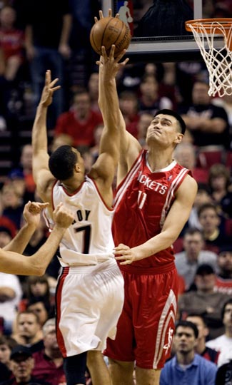 中新網4月19日電 北京時間4月19日,火箭旗開得勝,在季后賽首輪的第一場比賽中客場以108-81輕取開拓者。姚明在短短24分鐘內9投9中得到24分9個籃板2次蓋帽。