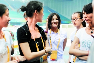 馬晨菲:我和杜鋒的認(rèn)識(shí)說(shuō)起來(lái)挺有意思。當(dāng)時(shí)我與杜鋒都在國(guó)家體育總局大院訓(xùn)練并都在清真食堂吃飯。有一次,我們游泳隊(duì)的幾名女孩一起在食堂吃飯,大家都在邊開(kāi)玩笑邊議論說(shuō)“某某隊(duì)的某某某是我的偶像!”我當(dāng)時(shí)也在想:從小到大,只有父親才是我的偶像,除此以外我好像真的再?zèng)]有偶像。不行,我也得跟她們一樣找一個(gè)偶像!叭绻F(xiàn)在誰(shuí)從食堂進(jìn)來(lái),誰(shuí)就將成為我的偶像!痹捯粑绰洌粋(gè)高大英俊的帥哥走了進(jìn)來(lái)———他就是杜鋒。當(dāng)時(shí)我還不認(rèn)識(shí)杜鋒。準(zhǔn)確地說(shuō),是我第一次注意到他。