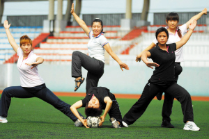 美女加功夫撐不起公司業(yè)務(wù),這讓江海銘陷入了苦惱。周星弛的電影《少林足球》給了江海銘靈感,他突發(fā)奇想,讓自己的隊員們練起了足球。5月末,“中國首支美女功夫足球隊”宣告成立。江海銘讓隊員們做出各種造型,再加上一只足球,拍出照片做成海報,懸掛在了寧河縣體育館那間租來的練功房里。海報很像是《少林足球》宣傳畫,不同的是,周星弛那些或高或矮或胖或瘦的師兄弟們,換成了美女。