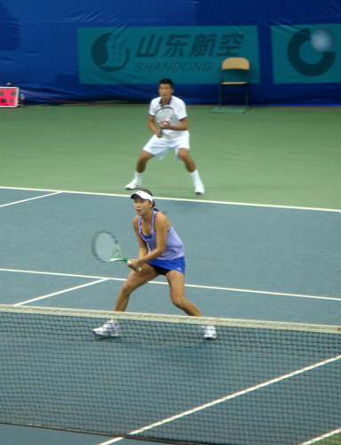 今天一襲粉衣亮相的鄭潔十分搶眼。首盤比賽一開始,鄭潔就表現(xiàn)非常不錯的狀態(tài),在連下四分拿下發(fā)球局后,她又在手握兩個破發(fā)點的情況下輕松破發(fā),三比一領先。第五局,兩人多次打出平分,最終鄭潔憑借著把握關建球的能力,再次破發(fā)。鄭潔在第六局保發(fā)成功,在第七局中鄭潔拿到三個破發(fā)點輕松破發(fā),從而以六比一贏下首盤。