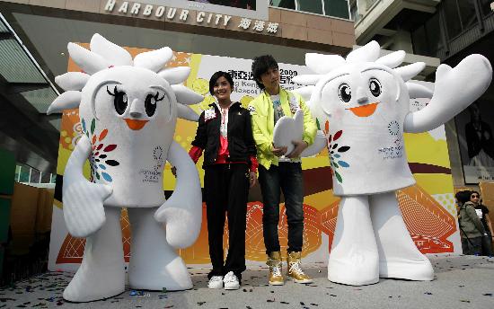 兩個(gè)吉祥物設(shè)計(jì)以火和獅子為創(chuàng)作元素,展現(xiàn)了香港人自強(qiáng)不息、同處“獅子山下”的拼搏互助精神。吉祥物的設(shè)計(jì)師毛沛畿和梁伯強(qiáng)表示,“東仔”和“亞妹”的頭發(fā)象征火焰,代表香港人的活力,身上的煙花斑紋與2009年東亞運(yùn)動(dòng)會(huì)會(huì)徽相呼應(yīng),綻放出奧運(yùn)五環(huán)的顏色,代表著發(fā)揚(yáng)體育精神。
