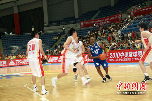 5月7日,周五的晚上,2010年中美明星籃球賽在浙江杭州黃龍?bào)w育館開賽。和姚明搭檔過(guò)的卡爾-蘭德里,拿過(guò)NBA總冠軍的“手套”佩頓,代表美國(guó)國(guó)家隊(duì)拿過(guò)奧運(yùn)會(huì)金牌的里奇蒙德……賽前,主辦方的宣傳詞句中,不乏璀璨的光環(huán)。