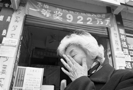 前晚24時,省體彩中心宣布922萬元大獎被棄領,這起事件本已塵埃落定,但昨日事情又出現(xiàn)波折:盡管手上沒有中獎的那張彩票,也記不清楚中間的幾位數(shù)字,滿頭銀發(fā)的胡慧瓊昨日中午依然第3次來到都江堰景環(huán)路277號體彩銷售點,她堅信自己就是那位922萬元大獎的得主。