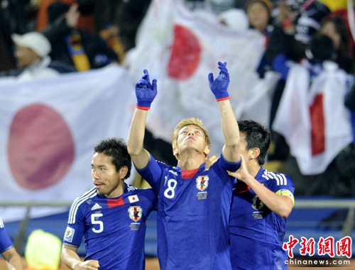 在另外一個賽場,荷蘭隊2比1領(lǐng)先喀麥隆隊,鎖定了小組第一的名次。如果丹麥隊不再追兩球,日本隊將以小組第二名的身份晉級。不過在比賽進行到87分鐘,日本隊發(fā)動進攻大久保嘉人傳球給前插的本田圭佑,本田圭佑禁區(qū)內(nèi)漂亮轉(zhuǎn)身后將球傳給插上的岡崎慎司,后者推射空門得手,日本隊3比1領(lǐng)先對手。