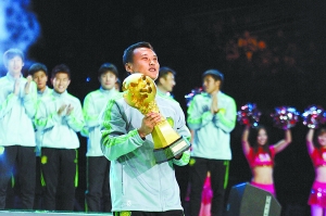 晚7時30分,晚會拉開帷幕,在一段勁爆的熱舞之后,國安將士陸續(xù)登場和觀眾見面。所有人站定后,徐云龍在全場球迷的呼喊聲中捧著中超冠軍杯“火神杯”登臺,現(xiàn)場氣氛被推向高潮。隨后,徐云龍將獎杯交給教練和隊友,大家依次高舉獎杯向球迷致意。球員們和歌星沙寶亮一起演唱了隊歌《國安永遠爭第一》。