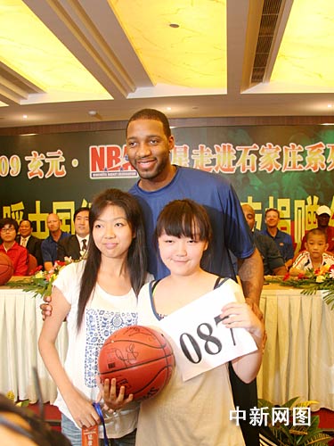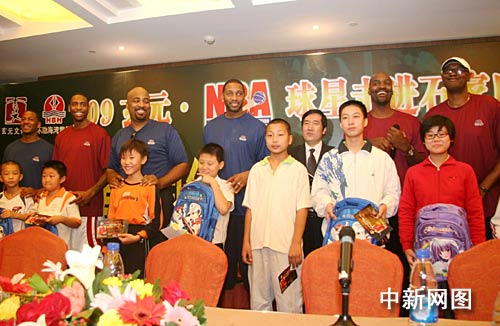 中新網(wǎng)石家莊9月1日電 (記者 艾廣德)繼戴維斯、卡爾德隆上月亮相石家莊后,河北的籃球迷們今天又迎來(lái)麥蒂領(lǐng)銜的十位NBA球星,不過(guò)這次球星們是來(lái)獻(xiàn)愛(ài)心的。