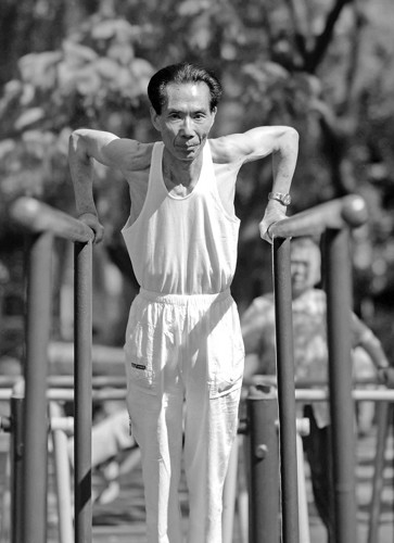 就在記者眼前,於大伯輕松一躍,雙手已經(jīng)撐在了雙扛上,雙手臂呈標(biāo)準(zhǔn)的90度角,接著雙臂放松再撐起,1個(gè)、2個(gè)、3個(gè)……眾人和記者一起數(shù)著,一直數(shù)到15個(gè),於大伯才輕松下杠。 “你們沒(méi)到時(shí)已經(jīng)做了三四十個(gè),這幾個(gè)算展示,做40個(gè)沒(méi)問(wèn)題!膘洞蟛f(shuō),據(jù)他所知,杭州60歲以上能做這么多的好像還沒(méi)碰到過(guò),和一氣呵成能做80個(gè)俯臥撐一樣,於大伯希望有人來(lái)和他比試比試、交流交流。”