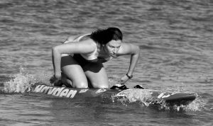 這純粹是“誤導(dǎo)”!幾乎每一分每一秒,海上交通事故、風(fēng)暴、迷霧、傷病、暴曬以及鯊魚,都可能要了這三個勇敢女人的命,因為她們的工具——沖浪板根本沒法保證安全。這是種相當(dāng)原始的方式,三個女人每次跪著或者趴在沖浪板上用手劃2小時,然后換人替班。每人每天劃4次,24小時日夜兼程,以保證每天100公里以上的進度。沖浪板除了載人,就沒有放其他物資的空間了,所以她們只隨身帶一小包,里面只有3件東西:干衣服、照明燈和救生煙火。