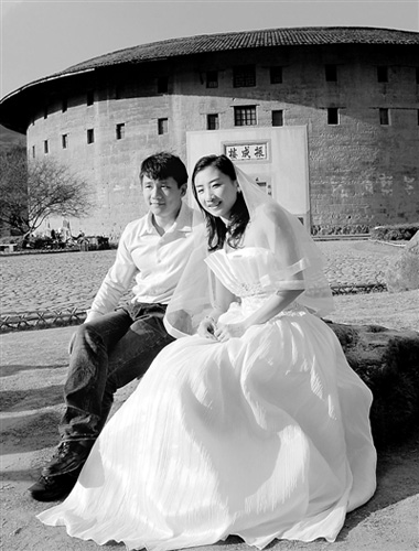 這張疑似婚紗照中,何雯娜身著白色婚紗,而陳一冰上身穿著淺色襯衫,下身的打扮卻很休閑,背景是振成樓。據(jù)何雯娜家人介紹,何雯娜全運(yùn)會(huì)后利用假期回到龍巖,為永定拍了這組宣傳照,這也是何雯娜第二次為土樓做宣傳了!霸谂男麄髡掌陂g,何雯娜換穿了不止一套服裝,白色婚紗是最后一套!焙析┠饶赣H介紹說,“和陳一冰拍照是在拍攝結(jié)束后,并不是婚紗照。”