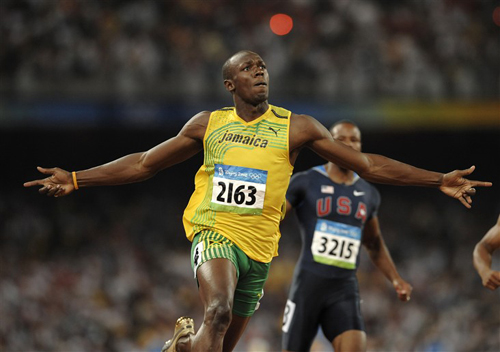 8月16日晚,在萬眾矚目的奧運(yùn)會(huì)百米“飛人大戰(zhàn)”中,牙買加選手博爾特以9秒69破世界紀(jì)錄奪得冠軍,之前的世界紀(jì)錄是由他在今年6月創(chuàng)造的972。 chinanews發(fā) 攝