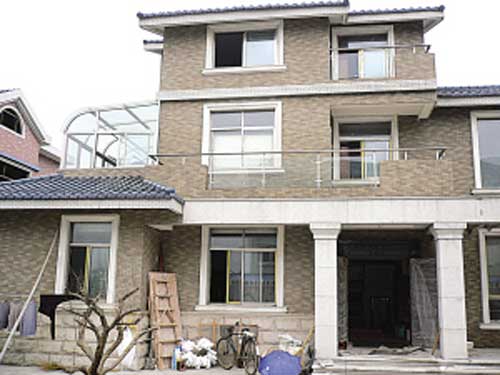 早就聽說丁俊暉家的豪宅要裝防彈玻璃,趕到現(xiàn)場記者第一時(shí)間找到了客廳的那扇大窗。據(jù)說,圖紙上原先預(yù)留的窗戶位置更大,全是落地窗,但考慮到安全因素,丁家還是決定把窗的位置往上抬了一點(diǎn),但已非?捎^。記者走進(jìn)大窗仔細(xì)觀察了一番,玻璃確實(shí)很厚,“不是防彈的,因?yàn)榇白哟螅圆Aб褚稽c(diǎn),當(dāng)時(shí)是開玩笑說玻璃要厚到防彈才行,”照看屋子的沈大媽笑瞇瞇地告訴記者。
