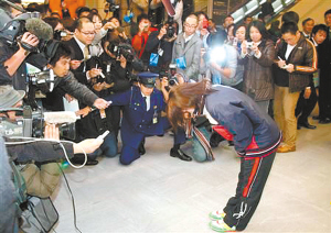 福原愛從機(jī)場走出之后,已經(jīng)沒有往日滿臉清純的笑靨,緊繃著臉在兩名空姐的保護(hù)下試圖殺出記者的重圍,面對記者:“你與錦織圭處朋友可順利?”、“彼此是否一直保持熱線聯(lián)系?”、“圣誕節(jié)是否會一起度過?”等諸如此類的提問,福原愛都采取了拒不回答的態(tài)度,最終在記者們的強(qiáng)烈要求之下,福原愛才眼里噙著熱淚表示:“非常抱歉這件事給大家?guī)磉@么大的麻煩,我希望今后繼續(xù)努力把球打好,不辜負(fù)大家的一片期望!彪S后她也低頭向眾人道歉。