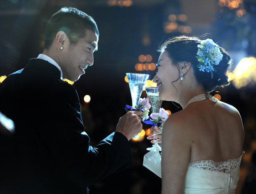 照片=韓聯(lián)社 2002年世界杯上的明星車斗理(左,德乙球隊TuS)于22日下午在首爾論峴洞皇宮飯店同申慧星(音,右)舉行了婚禮。申慧星是該酒店董事長申喆昊的長女。