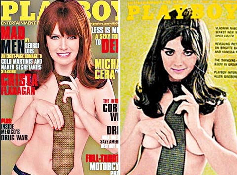 中新網(wǎng)7月19日電 當(dāng)紅美劇《廣告狂人》(Mad Men)中飾演接線生的女角Crista Flanagan,日前化身《花花公子》雜志的封面女郎,重現(xiàn)60年代兩個(gè)經(jīng)典的《花花公子》封面,其中一個(gè)造型更以半裸僅打領(lǐng)帶亮相,此造型正是取材自1960年Toni Lacey的11月號(hào)封面。
