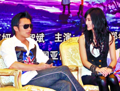 昨日,武俠偶像劇《劍俠情緣——藏劍山莊》在京舉行了開機發(fā)布會!断蓜ζ?zhèn)b傳》的導演馮伯源協同吳亞橋聯合指導、主演謝霆鋒、阿Sa、吳亞橋、鄭希怡、關智斌等主演到場。謝霆鋒、阿Sa這對熒屏情侶此次卻出演了一對冤家,阿Sa在劇中要經常受到謝霆鋒的捉弄。阿Sa笑言,這才是兩人在生活中的真實關系,而謝霆鋒則表示,“其實捉弄她很容易,一點都不難”。