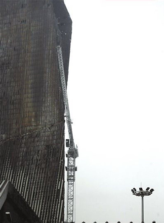“央視過火樓”將于今日啟動復(fù)建工程的第一階段,即拆卸施工階段。記者從該工程總承包單位———北京城建集團(tuán)了解到,今日啟動的是金屬幕墻和網(wǎng)架的拆卸。