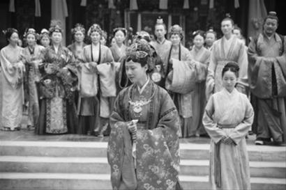 新版《紅樓夢》中還有一個大場面——“可卿喪禮”,規(guī)格絲毫不次于“元妃省親”的花費,單是停靈就用了49天,“寧國府街上一條白漫漫人來人往,花簇簇官去官來”,加上數(shù)十位僧道日夜超度,薛蟠送來的、無人敢擅用的檣木棺,還有瑞珠殉葬,秦可卿的喪禮一時間有了親王級別的排場,引得賈政等人連連搖頭。而這場戲拍攝得也極為仔細(xì),為符合原著基本精神,遵照當(dāng)時的禮儀規(guī)矩,賈府一應(yīng)女眷均處在一個白幃子里。