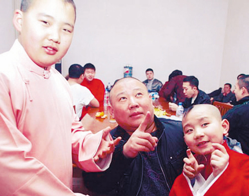 在此次德云社相聲系列演出中,曹金云稱病沒有參演,引起了媒體的諸多猜測,郭德綱兒子郭麒麟兩次登臺又讓人眼前一亮。前者郭德綱避而不談,關(guān)于兒子,他坦言:“雖然有自己的遺傳,也拜在了搭檔于謙門下,但現(xiàn)在還在讀書,不作特別要求!