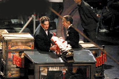 《木乃伊3》的故事來到戰(zhàn)亂的上海灘,秦朝的木乃伊將要復(fù)活,探險(xiǎn)家和軍閥幾乎同時(shí)而至。正在拍攝的有多場(chǎng)飛車戲,男主角布蘭登·弗雷澤也不例外,新科女主角艾佛林開車,他則站在煙花車的車斗里,用“中國(guó)火箭”對(duì)瘋狂的“兵馬俑”部隊(duì)發(fā)動(dòng)襲擊,整條南京路都彌漫著硝煙味。