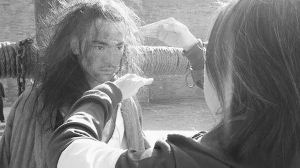 《投名狀》改編自清代四大奇案之一“刺馬”。據(jù)《南園叢稿》中刊出的《張汶祥傳》所記,案發(fā)后,張汶祥被凌遲剖心處死,其子也被閹割,極為凄慘。按說(shuō)陳可辛的《投名狀》既然來(lái)源于“刺馬”,沒(méi)理由放過(guò)這觸目驚心一幕?晌覀?cè)陔娪爸兄豢吹嚼钸B杰被刺殺,沒(méi)有看到金城武被凌遲的戲。事實(shí)上,陳可辛拍了凌遲金城武的那場(chǎng)戲,只是由于種種原因,公映版剪掉了這一結(jié)局,使得《投名狀》的故事在兄弟刺殺后戛然而止。秋彷
