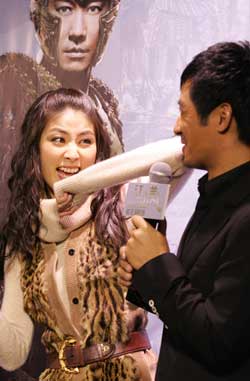 昨天,新武俠動作電影《江山美人》主題曲MV《隨夢而飛》在北京新世紀(jì)影院首發(fā)。MV剛結(jié)束,在場的人們不禁喊出“陳慧琳真漂亮啊”,就在這樣的驚呼聲中,陳慧琳和郭曉冬現(xiàn)身了。