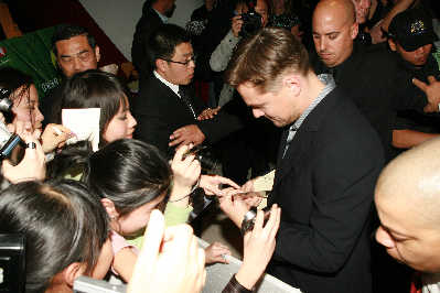 昨日上午的記者會(huì)更像是萊昂納多的影迷見面會(huì)。熱情的粉絲早早包圍了發(fā)布會(huì)現(xiàn)場(chǎng),高聲尖叫萊昂納多的名字。原本安排上臺(tái)簡(jiǎn)短發(fā)言,但萊昂納多的聲音每每被粉絲的尖叫聲兔弧2還馕緩美澄朊饜遣⒚灰虼碩腥魏尾宦炊嗟鼻濁械馗懊源蛘瀉簦骸癏i!”發(fā)布會(huì)結(jié)束后,萊昂納多還主動(dòng)走到粉絲居多的地方,與他們握手簽名。