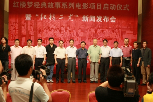 中新網(wǎng)6月29日電 由中國藝術研究院紅樓夢研究所、中國紅樓夢學會、萬眾盛世傳媒投資(北京)有限公司聯(lián)合主辦的“紅樓夢經(jīng)典故事系列電影啟動儀式暨《紅樓二尤》新聞發(fā)布會”于6月29日在北京隆重舉行。中國文聯(lián)黨組成員、書記處書記白庚勝,中國電影家協(xié)會分黨組副書記、秘書長許柏林,中國藝術研究院副院長、中國紅樓夢學會會長張慶善,北京大學藝術學院常務副院長彭吉象,著名紅學家李希凡等眾多知名人士和全國60余家新聞媒體參加了發(fā)布會。發(fā)布會上,紅劇系列電影總制片人周代清介紹了紅樓夢經(jīng)典故事系列電影項目內(nèi)容,并表示首部影片《紅樓二尤》將于9月中上旬開機,預計2009年春節(jié)期間在各大影院與廣大觀眾見面。