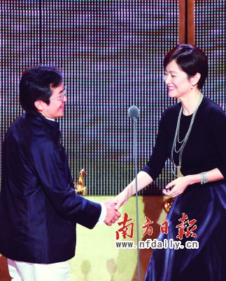 沉寂多年的香港歌手劉美君今年4月回香港開演唱會之后就被導(dǎo)演邱禮濤看中,邀請她加盟電影《我不賣身,我賣子宮》。結(jié)果第一次當(dāng)主角的劉美君居然憑借該片得到了金馬影后的頭銜。劉美君在現(xiàn)場異常激動,連稱自己完全沒有想到。而在后臺接受采訪時,她更是激動到落淚,并且宣稱,這個獎項(xiàng)對她來說,是最好的生日禮物(劉美君12月10日生日)。