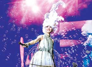 北展外的墻壁上掛有一張尚雯婕的巨幅海報,眾多歌迷在開場前都來到海報上簽名。演出開始后尚雯婕以黑色的爵士造型帶著六個伴舞亮相,以《雪夜狂想曲》拉開個唱序幕。歌迷的熱情頓時被點燃,他們揮著手中清一色的粉紅色熒光棒,據(jù)說這是尚雯婕最喜歡的顏色。隨后尚雯婕換掉外衣,以一襲銀色的禮服與舞者完成了一段長達(dá)五分鐘的西班牙熱舞。第一次舉辦演唱會尚雯婕顯然有些緊張,說話的時候略顯僵硬,和嘉賓蘇打綠一起演唱那首《我的未來不是夢》時也有些拘謹(jǐn)。昨天的尚雯婕在服裝造型上可謂是變化萬千。黑色的爵士禮服、歐洲宮廷風(fēng)格的晚裝、充滿未來感覺的泡泡裝一一亮相,稱她百變并不過分。除了新作,尚雯婕還演唱了參加超女比賽時候的幾首歌,包括《愛》、《夜夜夜夜》等,相比初出道的中性形象,如今的尚雯婕變化實在令人驚訝。