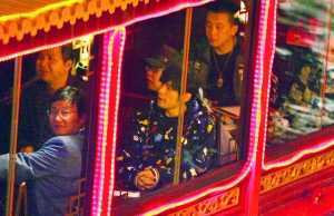 記者想詢問這條船上一個座位多少錢,“聚寶號”導游戴小姐卻告訴記者:“這條船一般不租,只有領(lǐng)導才能坐。”當夜,這條船上還有秦淮區(qū)政府的幾名領(lǐng)導,但因為杰倫來了,船上一切似乎都是為杰倫所設(shè)。原本船內(nèi)的卡拉OK放著古樸的音樂,大家要導游換成了周杰倫的《千里之外》,全都聽得津津有味。