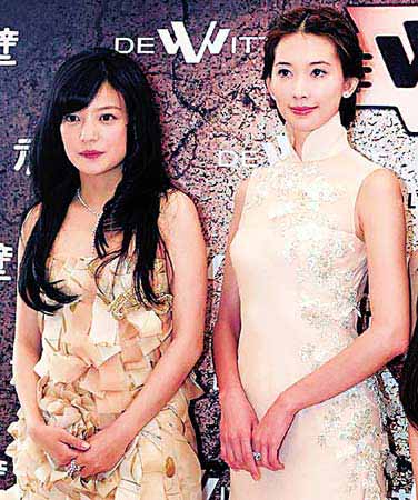 點(diǎn)評(píng):先說(shuō)下午的發(fā)布會(huì)上,趙薇一身粉桃紅及膝中袖裙子,顏色挺好看的,看著很舒服,奈何領(lǐng)子太窄,顯出趙薇肩膀過(guò)寬,加之整件衣服寬松沒腰身,說(shuō)得好聽是“韓國(guó)風(fēng)”,說(shuō)得不好聽就像孕婦裝;而林志玲可真會(huì)吸引人眼光,一件禮服都弄個(gè)中西合璧,上身是旗袍式,下身是飄逸的西裙,而背后更有看頭,半透明裝顯露大好身材。