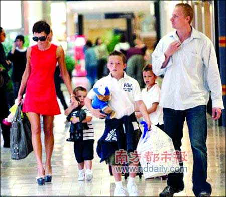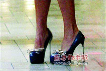 貝克漢姆陪同維多利亞在紐約的Macy商場(chǎng)出席旗下香水新品發(fā)布會(huì),維多利亞穿著的黑色長(zhǎng)靴就像褲子一樣長(zhǎng),不過(guò)最令人驚奇的是它根本就沒(méi)有“鞋跟”,走起路來(lái)完全是靠著前腳掌支撐,后腳跟完全是懸在半空中的,因此老公貝克漢姆全程“護(hù)駕”愛(ài)妻,惟恐維多利亞不慎摔倒。